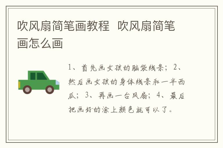 吹风扇简笔画教程 吹风扇简笔画怎么画简单又漂亮 知识分享 23年2月10日 编辑 童画 取消关注 关注 私信 1、首先画女孩的脑袋线条; 2、然后画女孩的身体线条和一半西瓜; 3、再画一台风扇; 4、最后把画好的涂上颜色就可以了。 No related posts. 本文内容由互联网用户自发贡献,该文观点仅代表作者本人。本站仅提供信息存储空间服务,不拥有所有权,不承担相关法律责任。如发现本站有涉嫌抄袭侵权/违法违规的内容, 请发送邮件至 2245678901@qq.com 举报,一经查实,本站将立刻删除。 给TA打赏 共{{data.count}}人 人已打赏