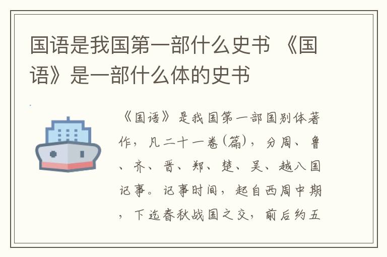 《国语》是我国第一部国别体著作,凡二十一卷(篇),分周、鲁、齐、晋、郑、楚、吴、越八国记事。记事时间,起自西周中期,下迄春秋战国之交,前后约五百年。
