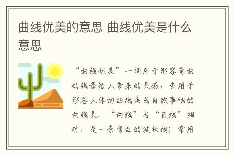 “曲线优美”一词用于形容弯曲的线条给人带来的美感,多用于形容人体的曲线美或自然事物的曲线美。“曲线”与“直线”相对,是一条弯曲的波状线;常用于指人的身材,人体的线条,比如“这件衣服把她浑身的曲线都显露出来了。”
