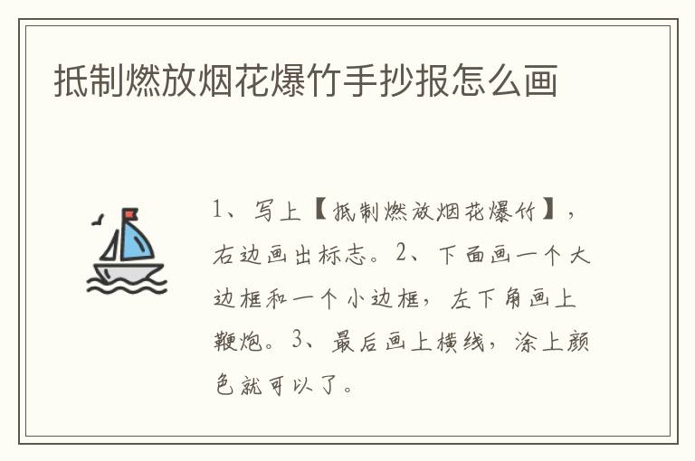 抵制燃放烟花爆竹手抄报怎么画简单又漂亮 知识分享 23年2月10日 编辑 童画 取消关注 关注 私信 1、写上【抵制燃放烟花爆竹】,右边画出标志。 2、下面画一个大边框和一个小边框,左下角画上鞭炮。 3、最后画上横线,涂上颜色就可以了。 No related posts. 本文内容由互联网用户自发贡献,该文观点仅代表作者本人。本站仅提供信息存储空间服务,不拥有所有权,不承担相关法律责任。如发现本站有涉嫌抄袭侵权/违法违规的内容, 请发送邮件至 2245678901@qq.com 举报,一经查实,本站将立刻删除。 给TA打赏 共{{data.count}}人 人已打赏