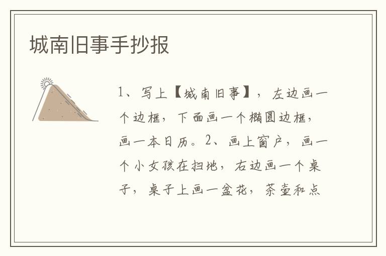 城南旧事手抄报 知识分享 23年2月10日 编辑 童画 取消关注 关注 私信 1、写上【城南旧事】,左边画一个边框,下面画一个椭圆边框,画一本日历。 2、画上窗户,画一个小女孩在扫地,右边画一个桌子,桌子上画一盆花,茶壶和点心。 3、上面画一个盆,里面画上衣服,下面画一个边框,周围画一个天气的标志。 4、最后涂上颜色就可以啦。 No related posts. 本文内容由互联网用户自发贡献,该文观点仅代表作者本人。本站仅提供信息存储空间服务,不拥有所有权,不承担相关法律责任。如发现本站有涉嫌抄袭侵权/违法违规的内容, 请发送邮件至 2245678901@qq.com 举报,一经查实,本站将立刻删除。 给TA打赏 共{{data.count}}人 人已打赏
