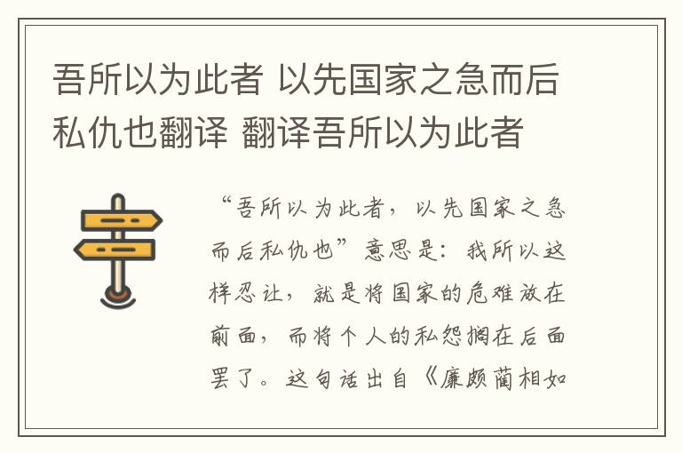 “吾所以为此者,以先国家之急而后私仇也”意思是:我所以这样忍让,就是将国家的危难放在前面,而将个人的私怨搁在后面罢了。