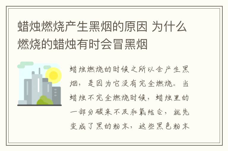 蜡烛燃烧的时候之所以会产生黑烟,是因为它没有完全燃烧。当蜡烛不完全燃烧时候,蜡烛里的一部分碳来不及和氧结合,就先变成了黑的粉末,这些黑色粉末聚集在一起,就形成了一股股的黑烟。