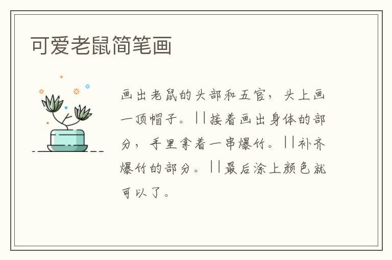 可爱老鼠简笔画 知识分享 23年2月11日 编辑 童画 取消关注 关注 私信 1、画出老鼠的头部和五官,头上画一顶帽子。 2、接着画出身体的部分,手里拿着一串爆竹。 3、补齐爆竹的部分。 4、最后涂上颜色就可以了。 No related posts. 本文内容由互联网用户自发贡献,该文观点仅代表作者本人。本站仅提供信息存储空间服务,不拥有所有权,不承担相关法律责任。如发现本站有涉嫌抄袭侵权/违法违规的内容, 请发送邮件至 2245678901@qq.com 举报,一经查实,本站将立刻删除。 给TA打赏 共{{data.count}}人 人已打赏