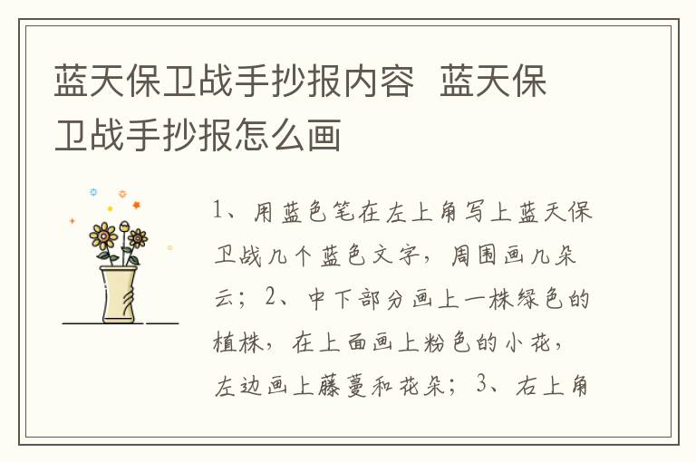 1、先用蓝色笔在左上角写上蓝天保卫战几个蓝色文字,周围画几朵云。