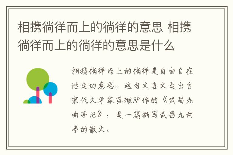 相携徜徉而上的徜徉是自由自在地走的意思。这句文言文是出自宋代文学家苏辙所作的《武昌九曲亭记》,是一篇描写武昌九曲亭的散文。