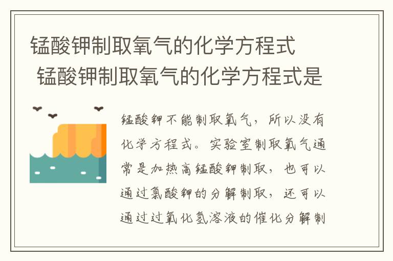 实验室制取氧气通常是加热高锰酸钾制取,也可以通过氯酸钾的分解制取,还可以通过过氧化氢溶液的催化分解制取。加热高锰酸钾制取氧气的化学方程式为:2KMnO4=(加热)=K2MnO4+MnO2+O2↑,即在加热条件下得到锰酸钾、二氧化锰和氧气;加热氯酸钾制取氧气的化学方程式为:2KClO3=(加热,二氧化锰)=2KCl+3O2↑,即在二氧化锰的催化作用,并加热的条件下得到氯酸钾和氧气;用过氧化氢制取氧气的化学方程式为:2H2O2=(MnO2)=2H2O+O2↑,即在二氧化锰的催化作用下得到水和氧气。
