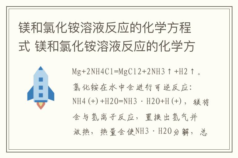 氯化铵在水中会进行可逆反应:NH4(+)+H2O=NH3·H2O+H(+),镁将会与氢离子反应,置换出氢气并放热,热量会使NH3·H2O分解,总反应方程式就是Mg+2NH4Cl=MgCl2+2NH3↑+H2↑。