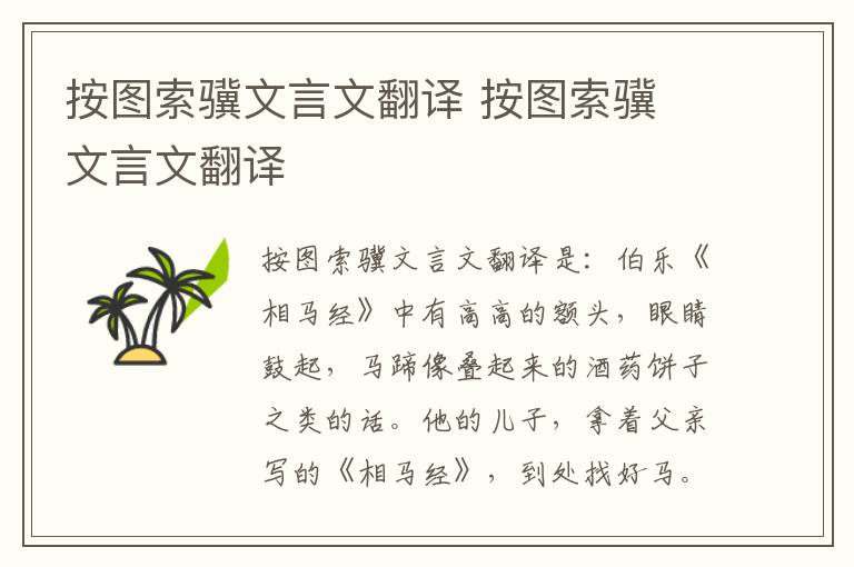 按图索骥文言文翻译是:伯乐《相马经》中有高高的额头,眼睛鼓起,马蹄像叠起来的酒药饼子之类的话。他的儿子,拿着父亲写的《相马经》,到处找好马。他按照书上所绘的图形去找,发现有一只癞蛤蟆很像书中写的千里马的特征,便高兴地把癞蛤蟆带回家。