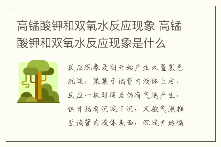 高锰酸钾和双氧水反应现象是刚开始产生大量黑色沉淀,聚集于试管内液体上方,反应一段时间后仍有气泡产生,但开始有沉淀下沉,又被气泡推至试管内液体表面,沉淀开始循环,成团絮状。反应结束时,所有沉淀转为白色,沉至试管底部,但量大大减小,不能覆盖住试管底。