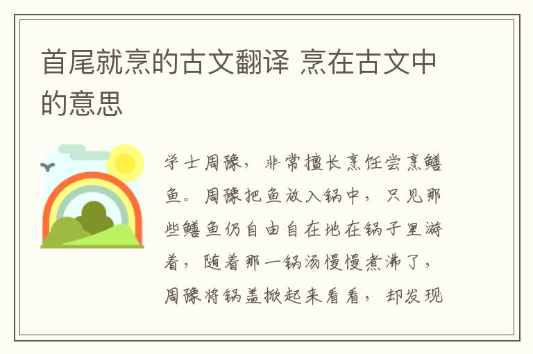 学士周豫,非常擅长烹饪尝烹鳝鱼。周豫把鱼放入锅中,只见那些鳝鱼仍自由自在地在锅子里游着,随着那一锅汤慢慢煮沸了,周豫将锅盖掀起来看看,却发现锅中有一条鳝鱼的身体竟然向上弓起,只留头部跟尾巴在煮沸的汤水之中。原来,这条母鳝鱼为了保护肚子里的众多鱼卵,情愿将自己的头尾浸入沸汤之中,直至死亡。护子心切而将腹部弯起,得以避开滚热的汤水。