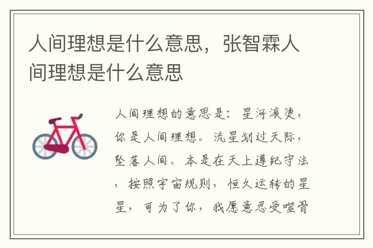人间理想的意思是:星河滚烫,你是人间理想。流星划过天际,坠落人间。本是在天上遵纪守法,按照宇宙规则,恒久运转的星星,可为了你,我愿意忍受噬骨之痛,先和控制我亿万年的引力作斗争,再穿过大气层,来到人间。我与大气发生剧烈的摩擦,我发出的光芒比烟花更绚烂,却也只有一瞬,不过足够了。