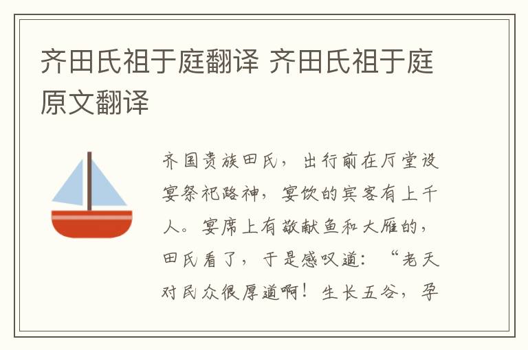 齐国贵族田氏,出行前在厅堂设宴祭祀路神,宴饮的宾客有上千人。宴席上有敬献鱼和大雁的,田氏看了,于是感叹道:“老天对民众很厚道啊!生长五谷,孕育鱼和鸟,用来享用。”所有食客高声附和。