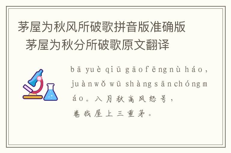 bā yuè qiū gāo fēng nù háo ,juàn wǒ wū shàng sān chóng máo 。