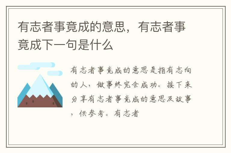 有志者事竟成的意思是指有志向的人,做事终究会成功。接下来分享有志者事竟成的意思及故事,供参考。