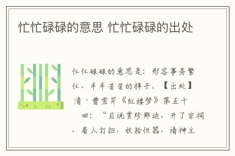 【释义】 形容事务繁忙、辛辛苦苦的样子。