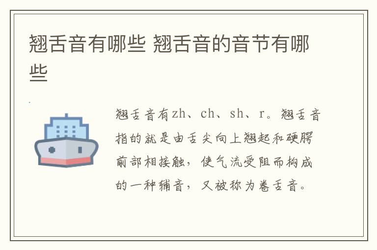 翘舌音有zh、ch、sh、r。翘舌音指的就是由舌尖向上翘起和硬腭前部相接触,使气流受阻而构成的一种辅音,又被称为卷舌音。
