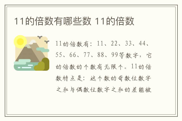 11的倍数有哪些数 11的倍数 知识分享 23年2月11日 编辑 童画 取消关注 关注 私信 11的倍数有:11、22、33、44、55、66、77、88、99等数字,它的倍数的个数有无限个。 11的倍数特点是:这个数的奇数位数字之和与偶数位数字之和的差能被11整除。例如数字76857,奇数位上的数字之和为7+8+7=22,偶数位上的数字之和为6+5=11,22-11=11,所以76857是11的倍数。 No related posts. 本文内容由互联网用户自发贡献,该文观点仅代表作者本人。本站仅提供信息存储空间服务,不拥有所有权,不承担相关法律责任。如发现本站有涉嫌抄袭侵权/违法违规的内容, 请发送邮件至 2245678901@qq.com 举报,一经查实,本站将立刻删除。 给TA打赏 共{{data.count}}人 人已打赏