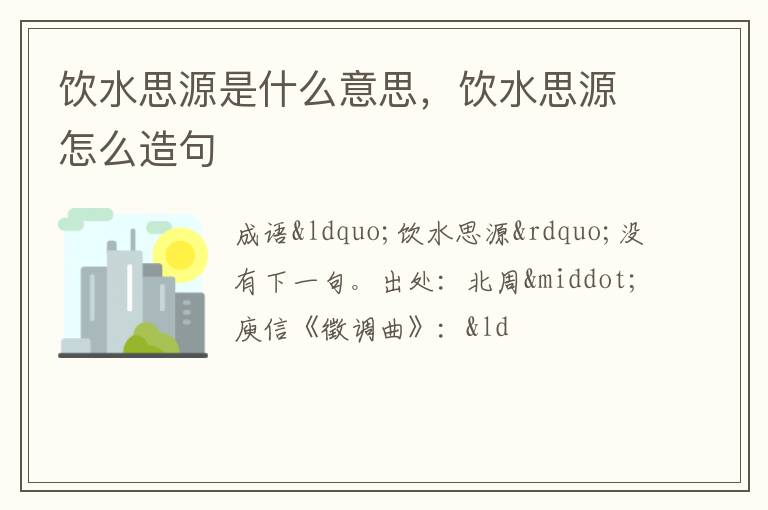 成语“饮水思源”没有下一句。出处:北周·庾信《徵调曲》:“落其实者思其树,饮其流者怀其源。”释义:喝水的时候想起水是从哪儿来的,比喻不忘本。例句:1.前人种树后人乘凉,我们应当饮水思源,爱护这片青山绿水。