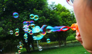 2、首先,我把小肥皂块、洗洁精和洗衣粉放入小瓶子里,再盛满清水,最后用吹泡泡的小喇叭和弄和弄,这样泡泡水就诞生了!我拧开盖子,里面全是五颜六色的小泡泡,我用吹泡泡的小喇叭蘸了一点泡泡水,拿到嘴边轻轻地吹了吹,随着口哨声,一个个又大又圆的泡泡就形成了!