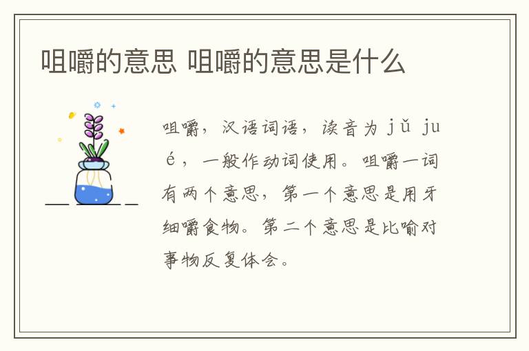 咀嚼,汉语词语,读音为 jǔ jué,一般作动词使用。咀嚼一词有两个意思,第一个意思是用牙细嚼食物。第二个意思是比喻对事物反复体会。