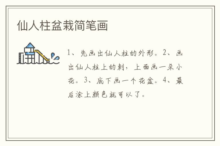 仙人柱盆栽简笔画 知识分享 23年2月11日 编辑 童画 取消关注 关注 私信 1、先画出仙人柱的外形。 2、画出仙人柱上的刺,上面画一朵小花。 3、底下画一个花盆。 4、最后涂上颜色就可以了。 No related posts. 本文内容由互联网用户自发贡献,该文观点仅代表作者本人。本站仅提供信息存储空间服务,不拥有所有权,不承担相关法律责任。如发现本站有涉嫌抄袭侵权/违法违规的内容, 请发送邮件至 2245678901@qq.com 举报,一经查实,本站将立刻删除。 给TA打赏 共{{data.count}}人 人已打赏