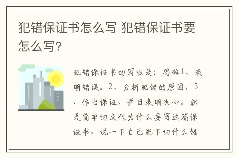 犯错保证书的写法是:思路1、表明错误。2、分析犯错的原因。3、作出保证,并且表明决心。就是简单的交代为什么要写这篇保证书,说一下自己犯下的什么错误,导致了怎样的后果,经过教育和反思,意识到了自己的错误,自己以后该怎样表现,最后再次请求原谅。