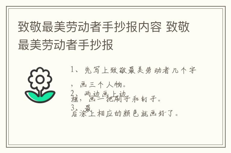 致敬最美劳动者手抄报内容 致敬最美劳动者手抄报 知识分享 23年2月11日 编辑 童画 取消关注 关注 私信 1、先写上致敬最美劳动者几个字,画三个人物。 2、两边画上边框,画一把刷子和钉子。 3、最后涂上相应的颜色就画好了。 No related posts. 本文内容由互联网用户自发贡献,该文观点仅代表作者本人。本站仅提供信息存储空间服务,不拥有所有权,不承担相关法律责任。如发现本站有涉嫌抄袭侵权/违法违规的内容, 请发送邮件至 2245678901@qq.com 举报,一经查实,本站将立刻删除。 给TA打赏 共{{data.count}}人 人已打赏
