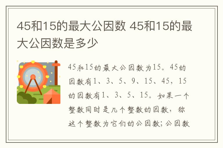 45和15的最大公因数 45和15的最大公因数是多少 知识分享 23年2月11日 编辑 童画 取消关注 关注 私信 45的因数有1、3、5、9、15、45,15的因数有1、3、5、15,所以45和15的最大公因数为15。 如果一个整数同时是几个整数的因数,称这个整数为它们的公因数;公因数中最大的数称为最大公因数。对任意的若干个正整数,1总是它们的公因数。 No related posts. 本文内容由互联网用户自发贡献,该文观点仅代表作者本人。本站仅提供信息存储空间服务,不拥有所有权,不承担相关法律责任。如发现本站有涉嫌抄袭侵权/违法违规的内容, 请发送邮件至 2245678901@qq.com 举报,一经查实,本站将立刻删除。 给TA打赏 共{{data.count}}人 人已打赏