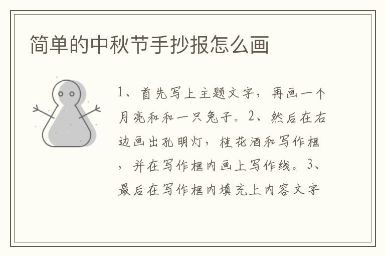 简单的中秋节手抄报怎么画简单又漂亮 知识分享 23年2月11日 编辑 童画 取消关注 关注 私信 1、首先写上主题文字,再画一个月亮和和一只兔子。 2、然后在右边画出孔明灯,桂花酒和写作框,并在写作框内画上写作线。 3、最后在写作框内填充上内容文字,涂上颜色就可以了。 No related posts. 本文内容由互联网用户自发贡献,该文观点仅代表作者本人。本站仅提供信息存储空间服务,不拥有所有权,不承担相关法律责任。如发现本站有涉嫌抄袭侵权/违法违规的内容, 请发送邮件至 2245678901@qq.com 举报,一经查实,本站将立刻删除。 给TA打赏 共{{data.count}}人 人已打赏