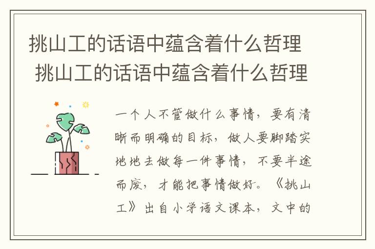 一个人不管做什么事情,要有清晰而明确的目标,做人要脚踏实地地去做每一件事情,不要半途而废,才能把事情做好。《挑山工》出自小学语文课本,文中的山是泰山,是中华民族独特的精神象征。这一方雄浑热土孕育产生了泰山“挑山工”一往无前的精神。