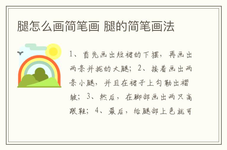 腿怎么画简笔画 腿的简笔画法简单又漂亮 知识分享 23年2月11日 编辑 童画 取消关注 关注 私信 1、首先画出短裙的下摆,再画出两条并拢的大腿; 2、接着画出两条小腿,并且在裙子上勾勒出褶皱; 3、然后,在脚部画出两只高跟鞋; 4、最后,给腿部上色就可以了。 No related posts. 本文内容由互联网用户自发贡献,该文观点仅代表作者本人。本站仅提供信息存储空间服务,不拥有所有权,不承担相关法律责任。如发现本站有涉嫌抄袭侵权/违法违规的内容, 请发送邮件至 2245678901@qq.com 举报,一经查实,本站将立刻删除。 给TA打赏 共{{data.count}}人 人已打赏