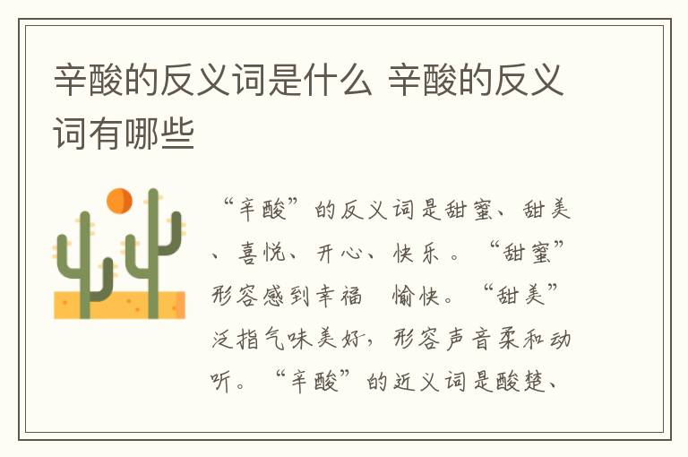 “辛酸”的反义词是甜蜜、甜美、喜悦、开心、快乐