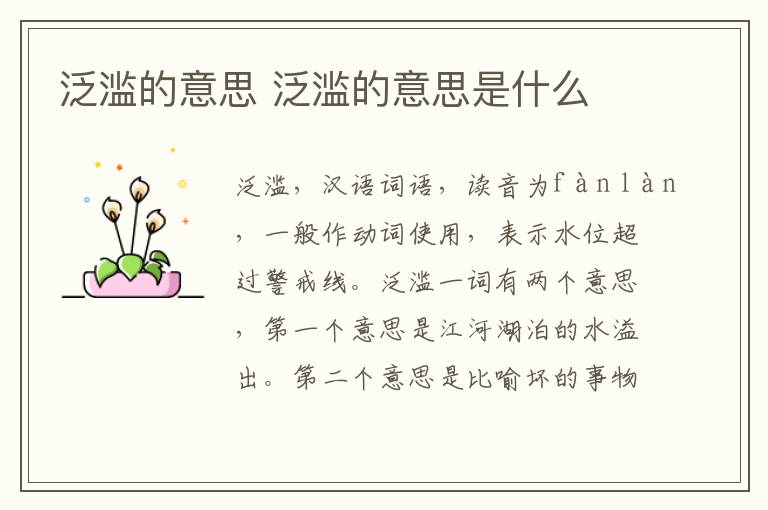 làn,一般作动词使用,表示水位超过警戒线。泛滥一词有两个意思,第一个意思是江河湖泊的水溢出。第二个意思是比喻坏的事物不受限制地流行。词语出自《孟子·滕文公上》:“洪水横流,泛滥於天下。”