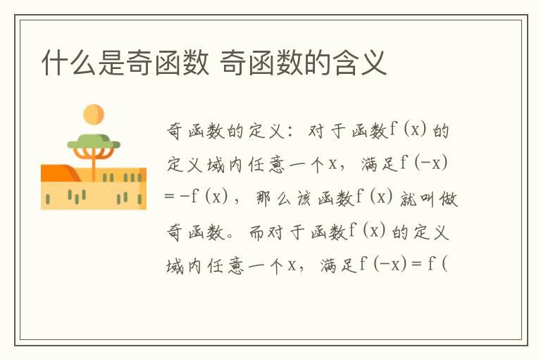 f(x),那么该函数f(x)就叫做奇函数。而对于函数f(x)的定义域内任意一个x,满足f(-x)= f(x),那么该函数f(x)就叫做偶函数。