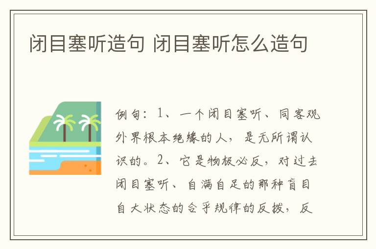 3、反之,一个知觉视野狭窄的领导者,闭目塞听,是难以做出正确决策的。 4、如果我们闭目塞听,不了解国际上科学技术的发展动向、趋势和水平,以可贵的人力物力重复他人已经走过的弯路,赶超世界先进水平就无从谈起,因此,世界各国都十分重视科技情报工作,不惜重金,组建庞大的信息情报网络系统,日以继夜地跟踪世界信息变化,为科研及时提供准确的情报资料。 5、普利默指出,允许在学校中灌输创世说,无异于有意要学生们闭目塞听,无视科学事实,使他们头脑封闭僵化,这是在戕害下一代。 拓展: 【解释】:闭上眼睛不看,堵住耳朵不听。形容对外界事物不闻不问。 【出自】:汉·王充《论衡·自纪》:“闭目塞聪,爱精自保。” 【示例】:一个~、同客观外界根本绝缘的人,是无所谓认识的。毛泽东《实践论》。 【近义词】:视而不见、听而不闻、闭关自守、闭目塞聪。 【反义词】:眼观六路、耳听八方。 【语法】:联合式;作谓语、宾语、定语;形容与外界隔绝,对事情脱离实际。