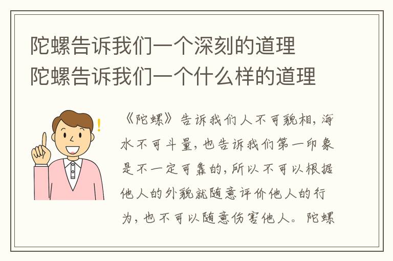 《陀螺》告诉我们人不可貌相,海水不可斗量,也告诉我们第一印象是不一定可靠的,所以不可以根据他人的外貌就随意评价他人的行为,也不可以随意伤害他人。陀螺指的是绕一个支点高速转动的刚体。