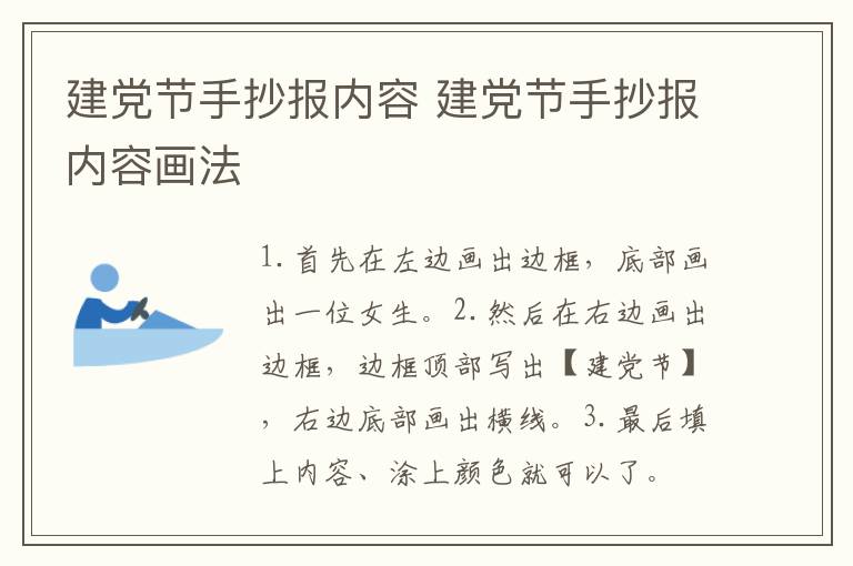 建党节手抄报内容 建党节手抄报内容画法 知识分享 23年2月12日 编辑 童画 取消关注 关注 私信 1.首先在左边画出边框,底部画出一位女生。 2.然后在右边画出边框,边框顶部写出【建党节】,右边底部画出横线。 3.最后填上内容、涂上颜色就可以了。 No related posts. 本文内容由互联网用户自发贡献,该文观点仅代表作者本人。本站仅提供信息存储空间服务,不拥有所有权,不承担相关法律责任。如发现本站有涉嫌抄袭侵权/违法违规的内容, 请发送邮件至 2245678901@qq.com 举报,一经查实,本站将立刻删除。 给TA打赏 共{{data.count}}人 人已打赏