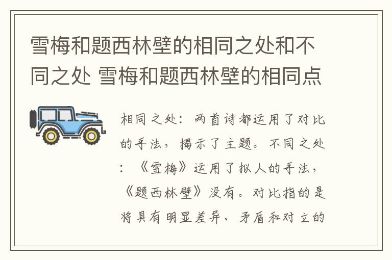 相同之处:两首诗都运用了对比的手法,揭示了主题。不同之处:《雪梅》运用了拟人的手法,《题西林壁》没有。对比指的是将具有明显差异、矛盾和对立的双方安排在一起,进行对照比较的表现手法。