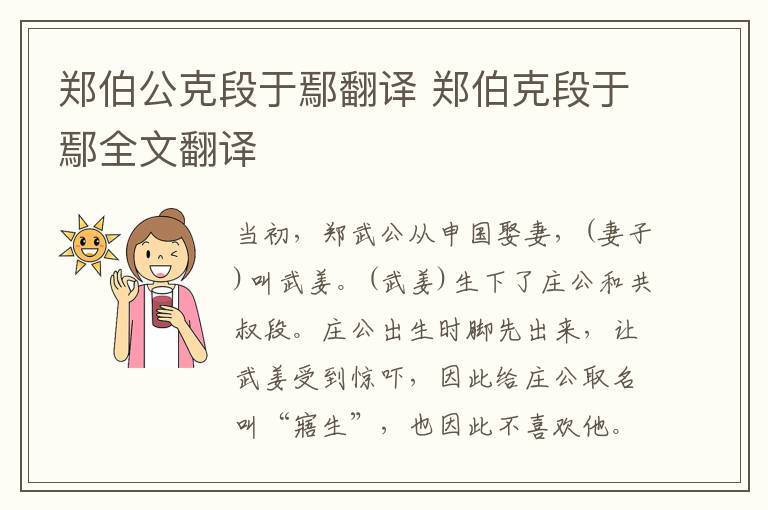 当初,郑武公从申国娶妻,(妻子)叫武姜。(武姜)生下了庄公和共叔段。庄公出生时脚先出来,让武姜受到惊吓,因此给庄公取名叫“寤生”,也因此不喜欢他。武姜偏爱共叔段,想立共叔段为世子,多次向武公请求,武公都不答应。