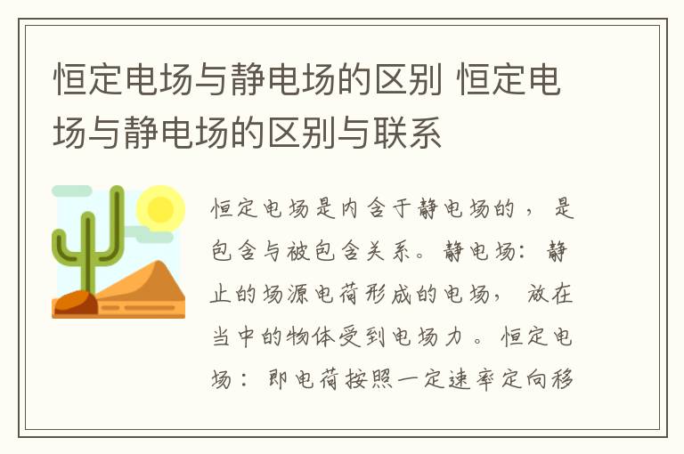 恒定电场是内含于静电场的,是包含与被包含关系。静电场:静止的场源电荷形成的电场,放在当中的物体受到电场力。恒定电场:即电荷按照一定速率定向移动,此时电荷所在的电场即为恒定电场。
