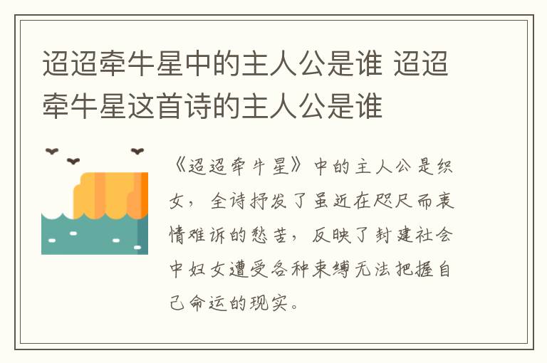 《迢迢牵牛星》中的主人公是织女,全诗抒发了虽近在咫尺而衷情难诉的愁苦,反映了封建社会中妇女遭受各种束缚无法把握自己命运的现实。