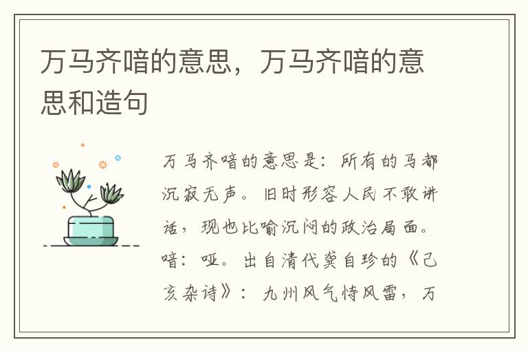 1.【解释】:喑:哑。所有的马都沉寂无声。旧时形容人民不敢讲话。现也比喻沉闷的政治局面。