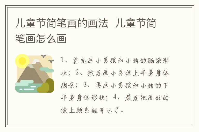 儿童节简笔画的画法 儿童节简笔画怎么画简单又漂亮 知识分享 23年2月12日 编辑 童画 取消关注 关注 私信 1、首先画小男孩和小狗的脑袋形状; 2、然后画小男孩上半身身体线条; 3、再画小男孩和小狗的下半身身体形状; 4、最后把画好的涂上颜色就可以了。 No related posts. 本文内容由互联网用户自发贡献,该文观点仅代表作者本人。本站仅提供信息存储空间服务,不拥有所有权,不承担相关法律责任。如发现本站有涉嫌抄袭侵权/违法违规的内容, 请发送邮件至 2245678901@qq.com 举报,一经查实,本站将立刻删除。 给TA打赏 共{{data.count}}人 人已打赏