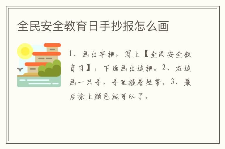 全民安全教育日手抄报怎么画简单又漂亮 知识分享 23年2月12日 编辑 童画 取消关注 关注 私信 1、画出字框,写上【全民安全教育日】,下面画出边框。 2、右边画一只手,手里握着丝带。 3、最后涂上颜色就可以了。 No related posts. 本文内容由互联网用户自发贡献,该文观点仅代表作者本人。本站仅提供信息存储空间服务,不拥有所有权,不承担相关法律责任。如发现本站有涉嫌抄袭侵权/违法违规的内容, 请发送邮件至 2245678901@qq.com 举报,一经查实,本站将立刻删除。 给TA打赏 共{{data.count}}人 人已打赏