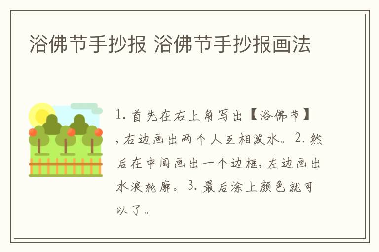 浴佛节手抄报 浴佛节手抄报画法 知识分享 23年2月12日 编辑 童画 取消关注 关注 私信 1.首先在右上角写出【浴佛节】,右边画出两个人互相泼水。 2.然后在中间画出一个边框,左边画出水浪轮廓。 3.最后涂上颜色就可以了。 No related posts. 本文内容由互联网用户自发贡献,该文观点仅代表作者本人。本站仅提供信息存储空间服务,不拥有所有权,不承担相关法律责任。如发现本站有涉嫌抄袭侵权/违法违规的内容, 请发送邮件至 2245678901@qq.com 举报,一经查实,本站将立刻删除。 给TA打赏 共{{data.count}}人 人已打赏