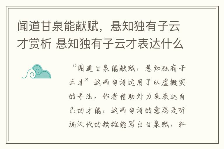 “闻道甘泉能献赋,悬知独有子云才”这两句诗运用了以虚概实的手法,作者借助外力来表达自己的才能,这两句诗的意思是听说汉代的扬雄能写出甘泉赋,料想您也有扬子云的文才。