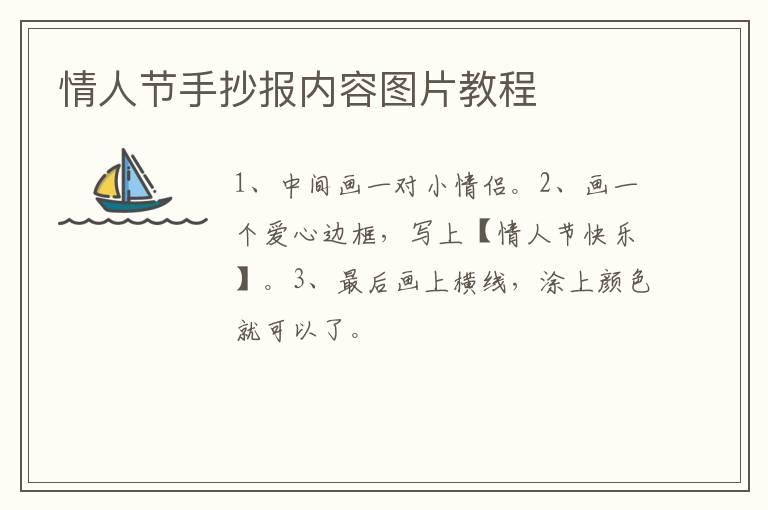 情人节手抄报内容图片教程 知识分享 23年2月12日 编辑 童画 取消关注 关注 私信 1、中间画一对小情侣。 2、画一个爱心边框,写上【情人节快乐】。 3、最后画上横线,涂上颜色就可以了。 No related posts. 本文内容由互联网用户自发贡献,该文观点仅代表作者本人。本站仅提供信息存储空间服务,不拥有所有权,不承担相关法律责任。如发现本站有涉嫌抄袭侵权/违法违规的内容, 请发送邮件至 2245678901@qq.com 举报,一经查实,本站将立刻删除。 给TA打赏 共{{data.count}}人 人已打赏