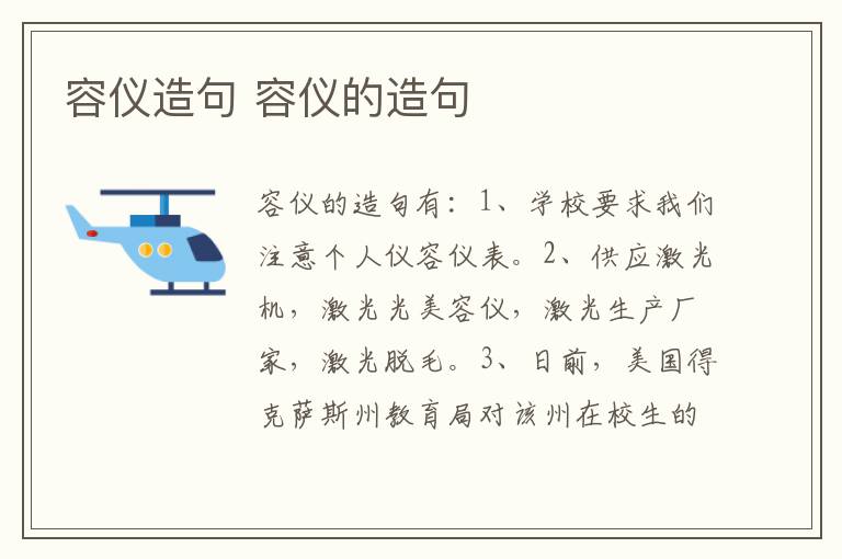 容仪的造句有:1、学校要求我们注意个人仪容仪表。2、供应激光机,激光光美容仪,激光生产厂家,激光脱毛。3、日前,美国得克萨斯州教育局对该州在校生的仪容仪貌做了新的规定,其中包括禁止学生佩戴装饰性的牙套或耳坠。