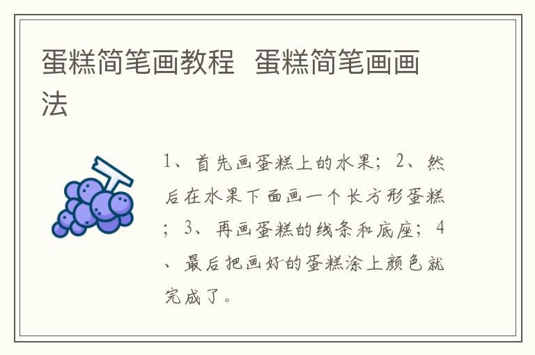 蛋糕简笔画教程 蛋糕简笔画画法 知识分享 23年2月12日 编辑 童画 取消关注 关注 私信 1、首先画蛋糕上的水果; 2、然后在水果下面画一个长方形蛋糕; 3、再画蛋糕的线条和底座; 4、最后把画好的蛋糕涂上颜色就完成了。 No related posts. 本文内容由互联网用户自发贡献,该文观点仅代表作者本人。本站仅提供信息存储空间服务,不拥有所有权,不承担相关法律责任。如发现本站有涉嫌抄袭侵权/违法违规的内容, 请发送邮件至 2245678901@qq.com 举报,一经查实,本站将立刻删除。 给TA打赏 共{{data.count}}人 人已打赏